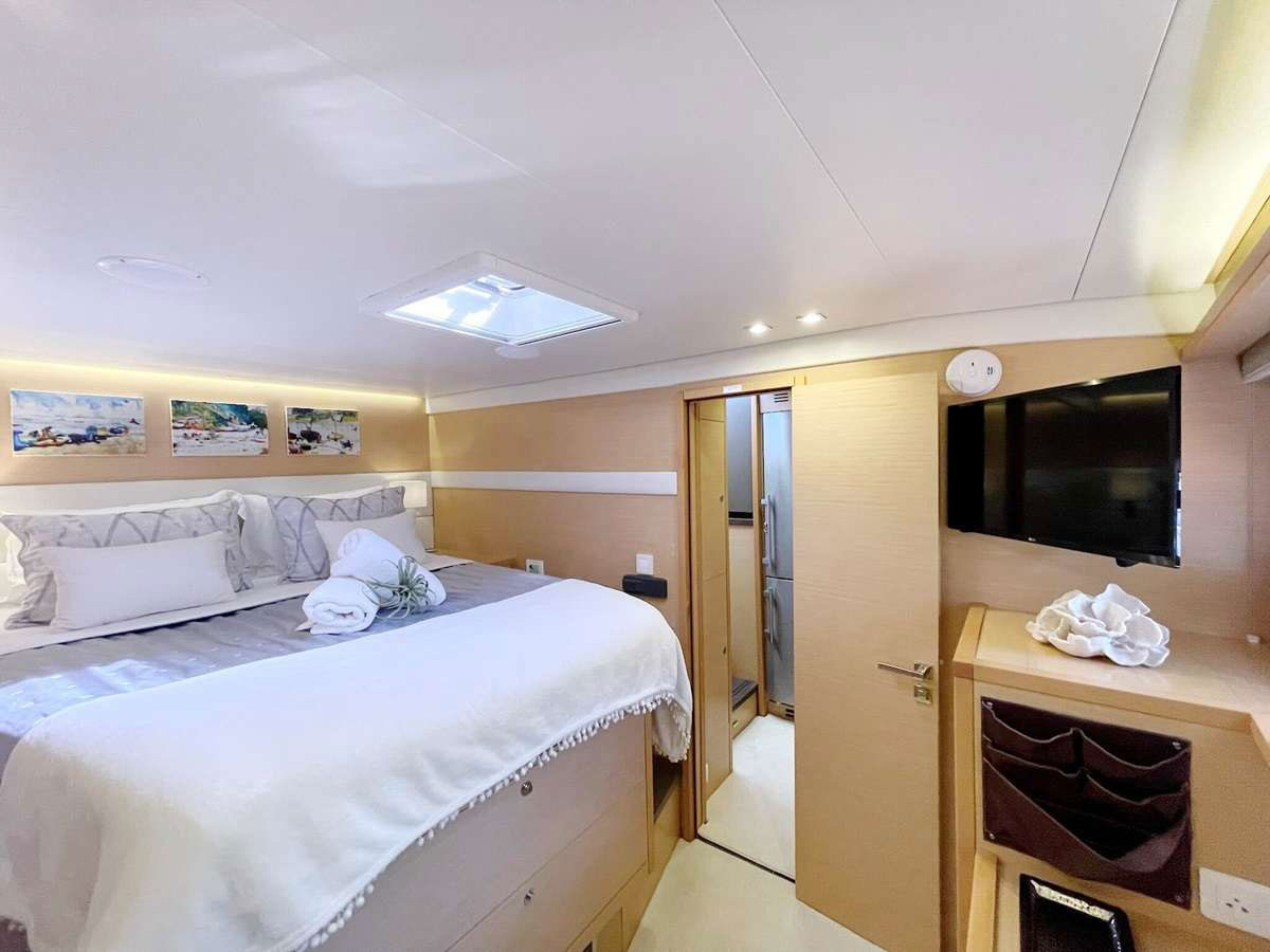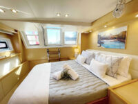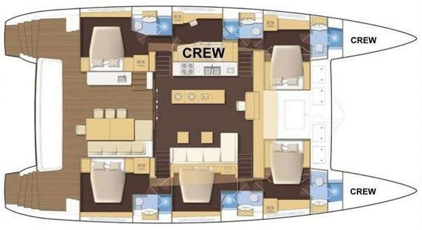 Spacious and inviting, this catamaran was made for larger, adventurous groups who love to share good times together. Multiple lounge and dining areas provide plenty of space to unwind, socialize, and enjoy stunning ocean views from sunrise to sunset. Each private guest cabin features its own ensuite bathroom and shower, giving every guest a comfortable retreat after a day of fun on the water.