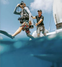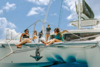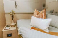 Wanderlust is pristine Lagoon 50 catamaran. Layout is three queen cabins with ensuite bathrooms and one double cabin. The double cabin shares a bathroom with one of the queen cabins so would be perfect for three couples or families. Each cabin has individual a/c controls and good storage space.